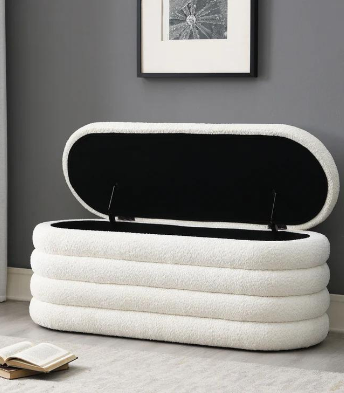 Bench ottomans are typically long and narrow. They are great for adding a versatile seating arrangement anywhere from the household lobby to the end of your bed and frequently come with internal storage. Keep them in the loungeroom or bedroom to declutter and optimize your space and store blankets, books and a whole range of other items.