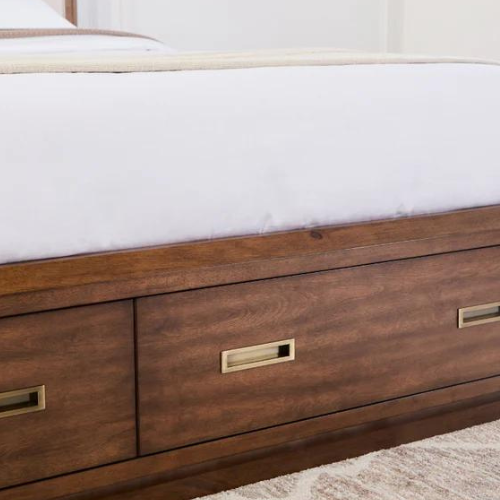 Experience the cozy embrace of neutral colors, soft tones, and rich wood grains. Begin by pairing an earthy rug with one of our stylish wooden beds to create an inviting atmosphere you'll never want to leave. The classic elegance of a textured rug will complement the timeless allure of natural wood flooring, bed frames, and furniture.