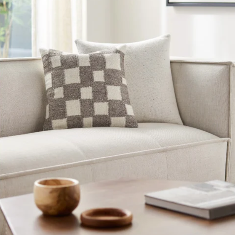 Texture is key to defining the “mood” of an interior. Sourcing a pillow with a texture that complements that of your rug without matching it per se adds a degree of warmth to your living space.