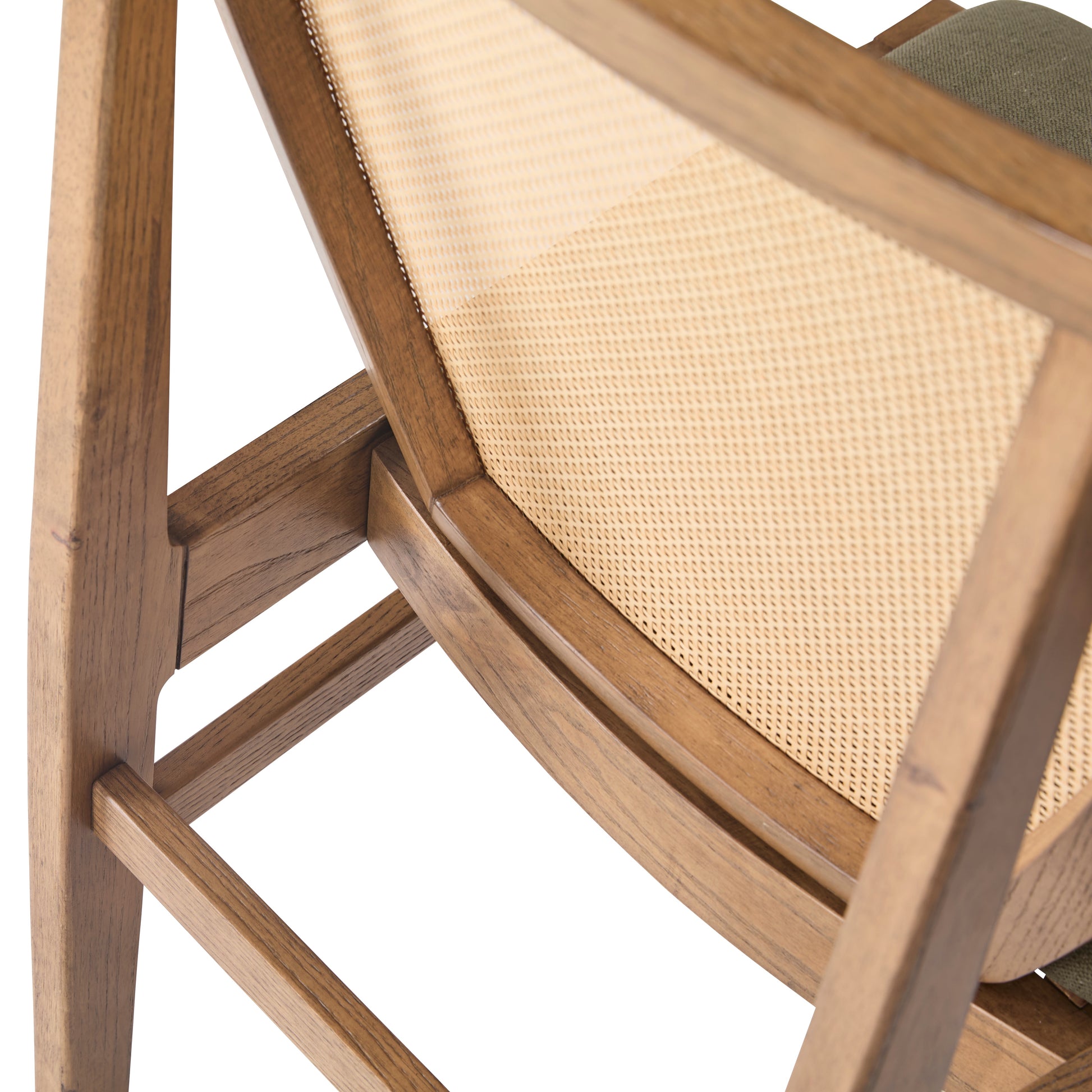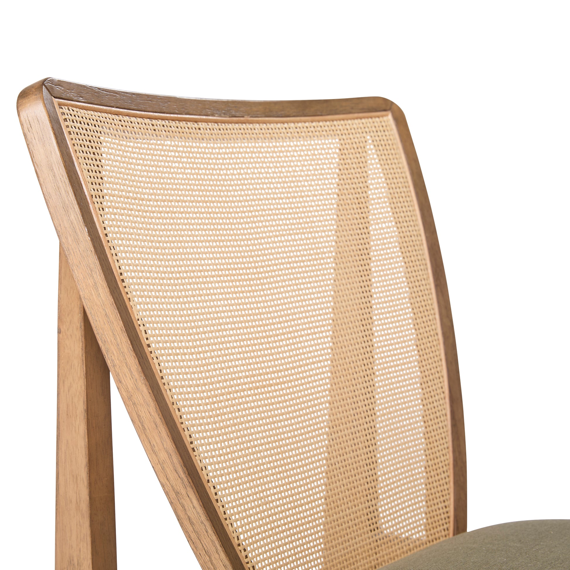 The Prague Dining Chair pairs mixed materials with a refined silhouette, blending modern simplicity with traditional warmth. A sculpted wood frame provides a clean architectural foundation, while the cane back introduces texture and a timeless, airy character. The upholstered seat adds soft comfort and a contemporary counterbalance, creating a harmonious interplay of structure, tone, and material.