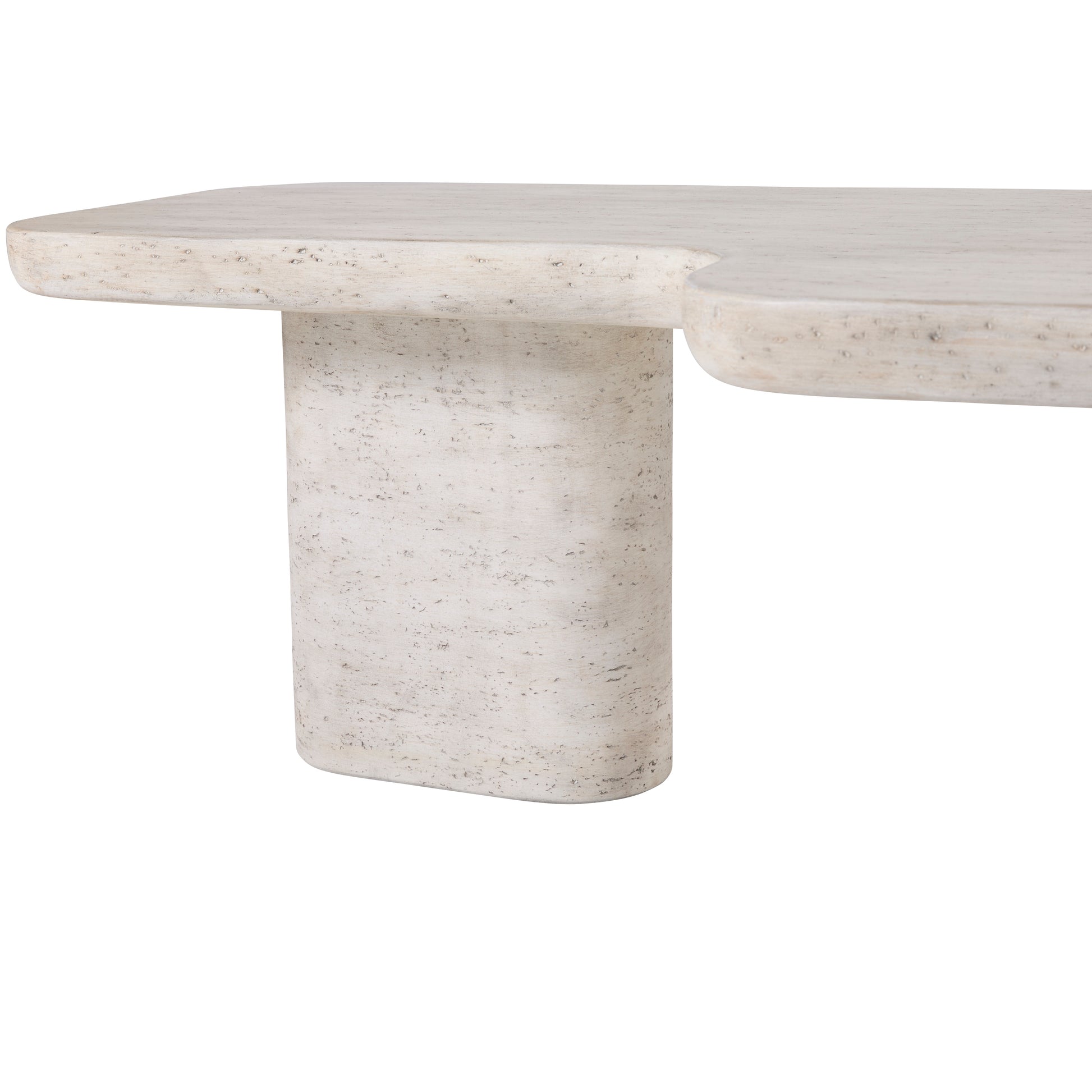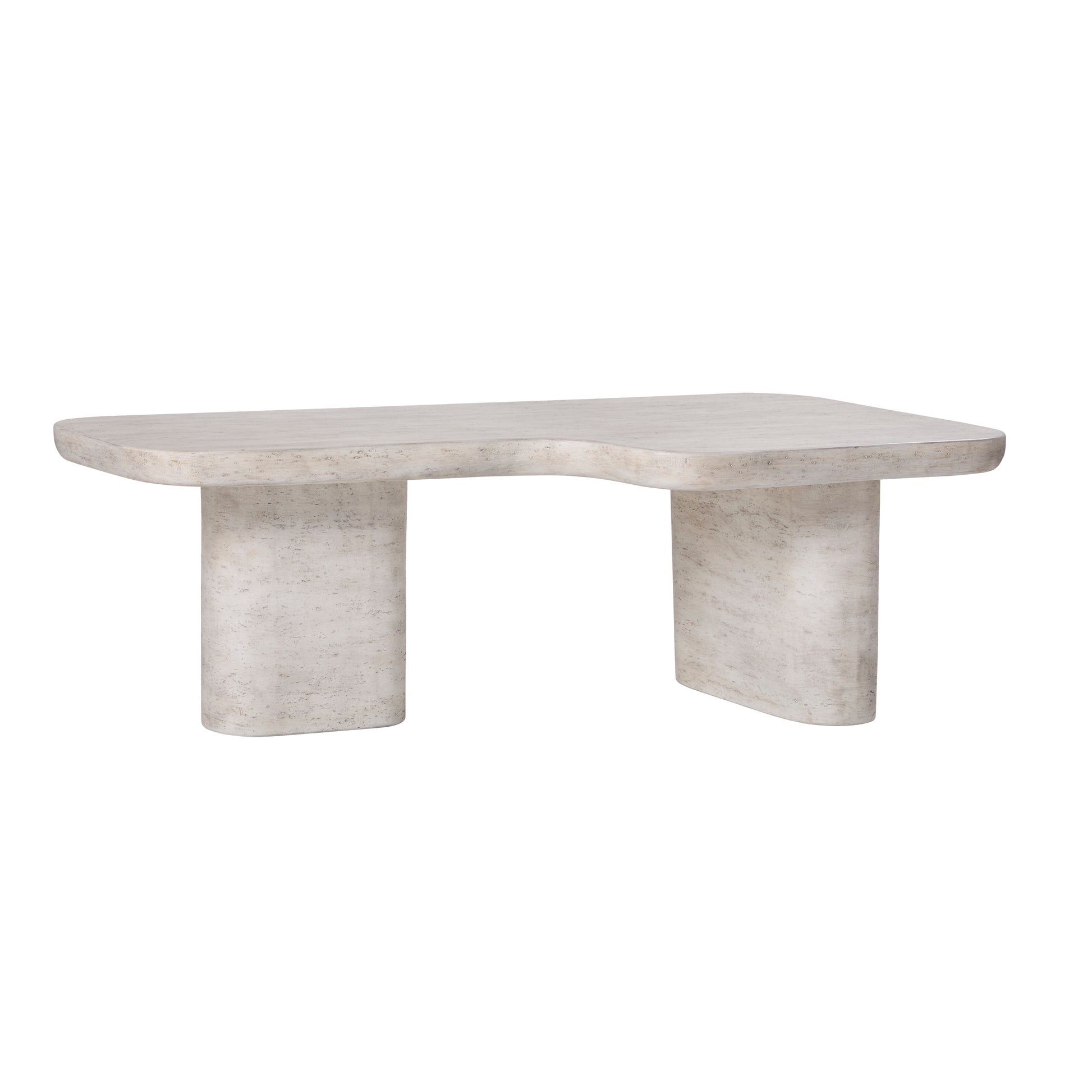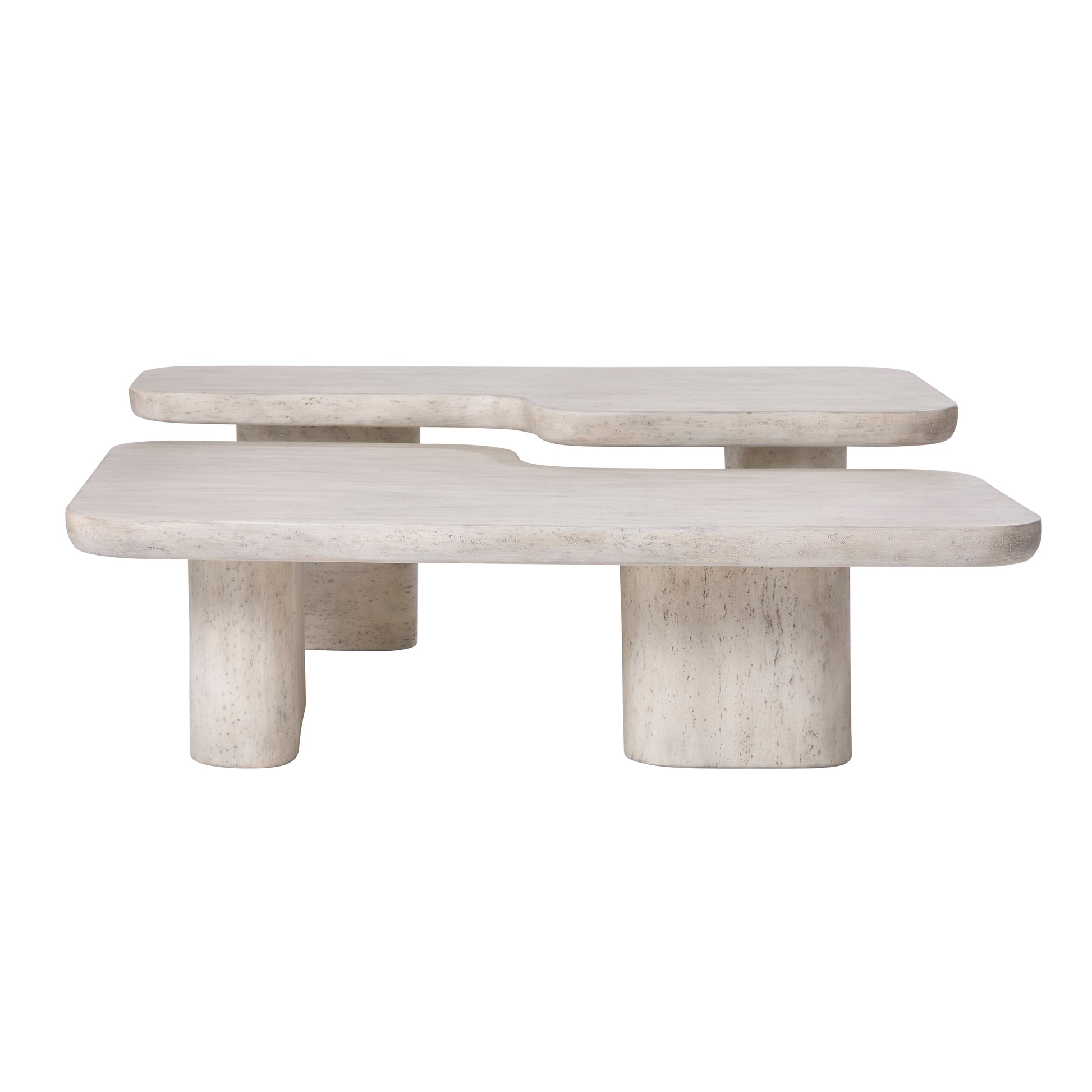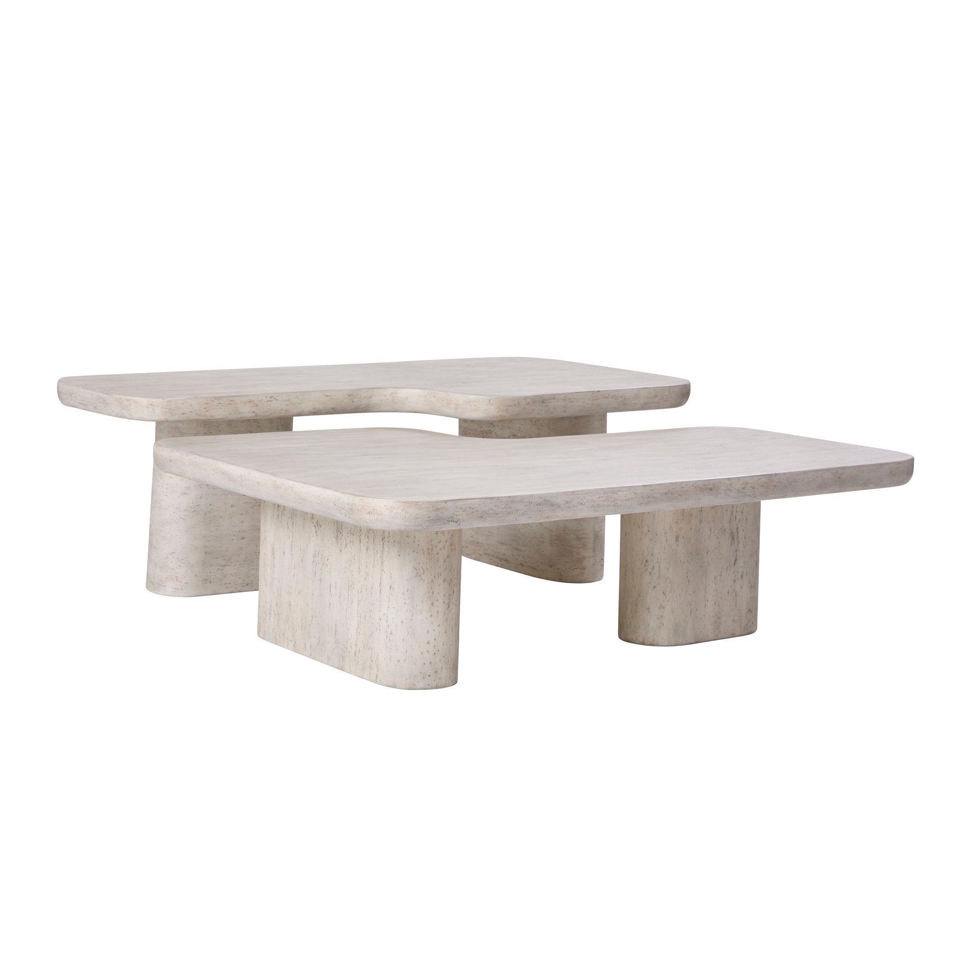 Includes one (1) table, additional nesting table sold separately; Polystone; Finished in faux travertine; Organic table shapes