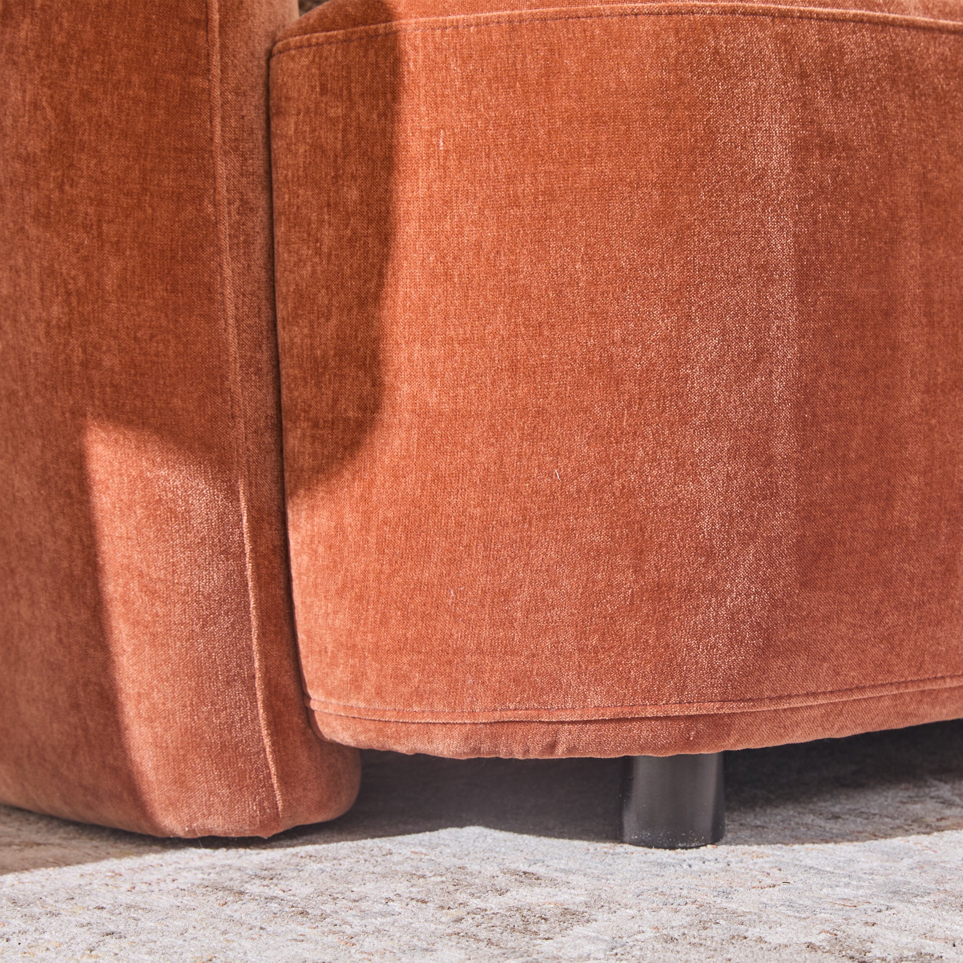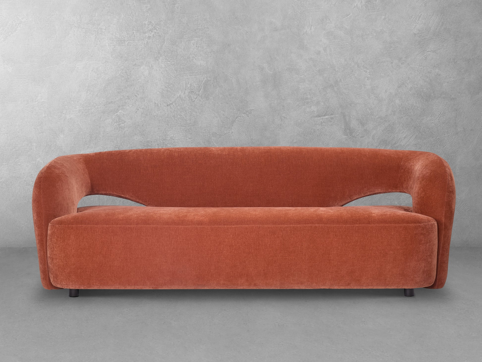 Modern European elegance reimagined for today’s spaces — the Barcelona sofa makes a bold yet refined impression. Its distinctive open-back profile and warm rust velvet bring both personality and polish, while a single continuous seat cushion keeps the look clean and uninterrupted. Deep, 2.0-density foam and a kiln-dried hardwood frame ensure performance without sacrificing luxury.