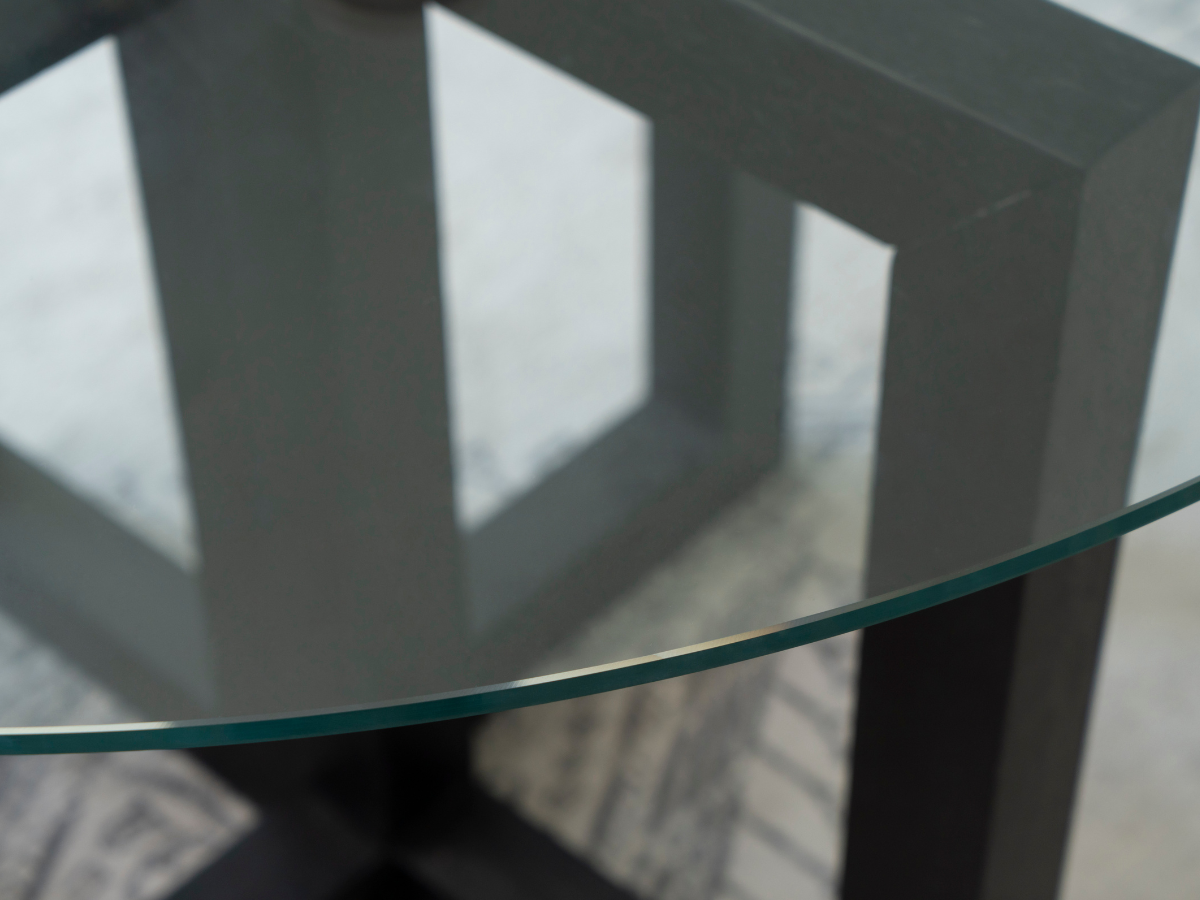 Atlas Glass Top Dining Table with Wood Base