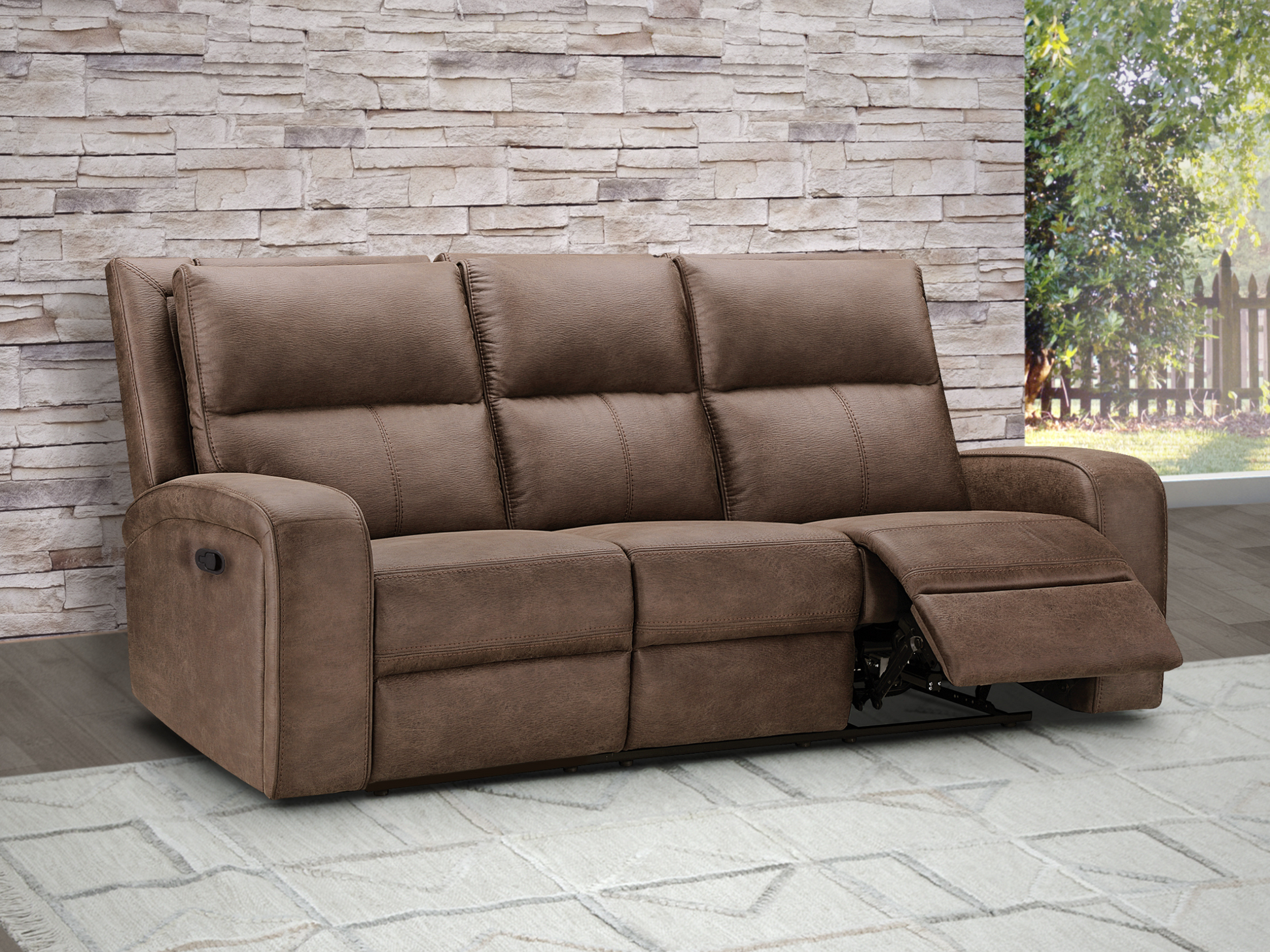 Includes: One (1) Reclining Sofa Sleek traditional design with plush cushions and classic contour tufting. Made up of 100% polyester fabric Manual reclining mechanism operated with a pull lever on the side for easy relaxation. Solid hardwood frame delivers long lasting durability. 2.2 Density Foam Assembly Required
