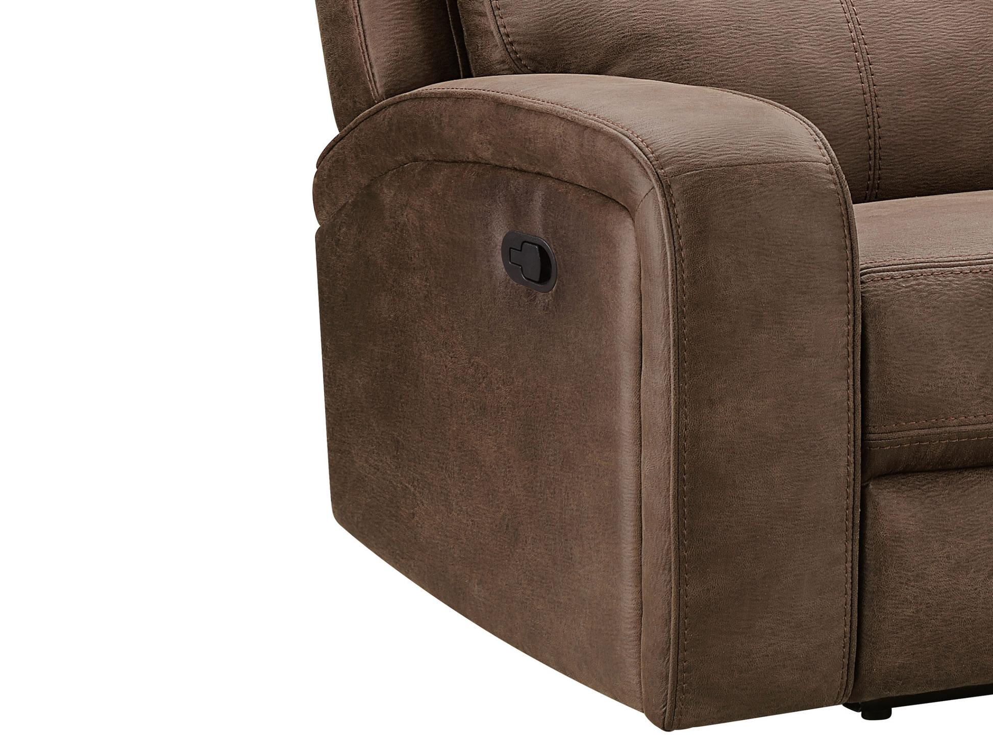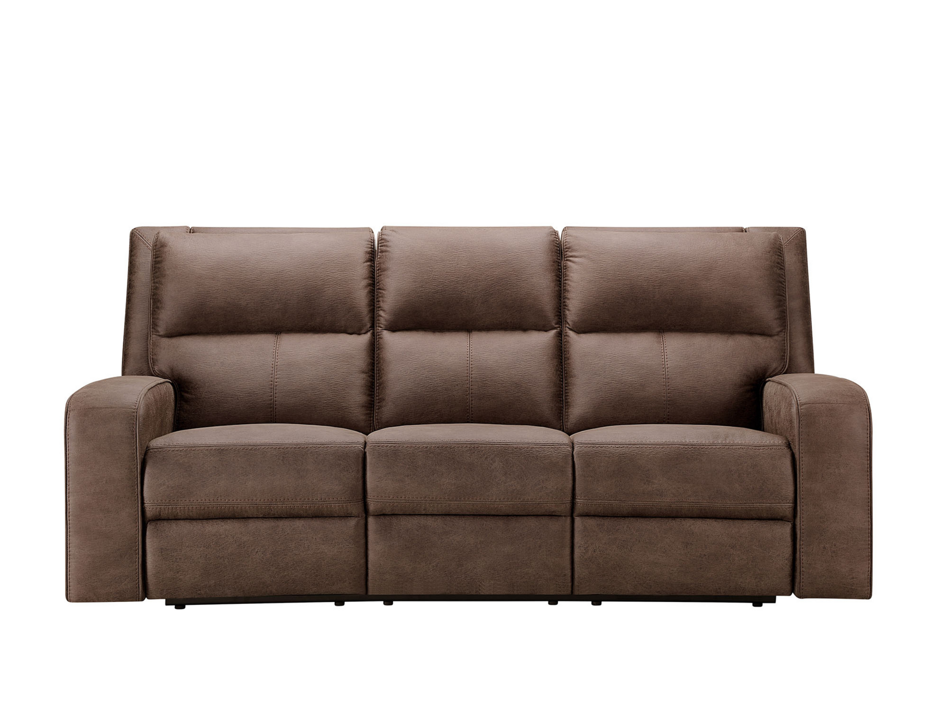 Indulge in luxurious comfort with the Bryce® Fabric Manual Reclining Sofa. Its sleek traditional design, plush cushions, and classic contour tufting offer maximum relaxation. The 100% polyester fabric and solid hardwood frame ensure long-lasting durability. Easily unwind with the manual reclining mechanism operated by a convenient pull lever.