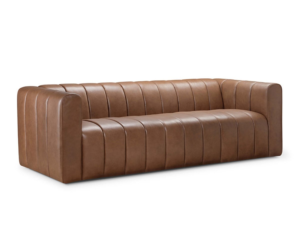 The Gianna leather sofa is both stylish and comfortable... two features that don't always go hand in hand when it comes to describing modern furniture. Featuring an oversized frame covered in 100% top grain leather with channel tufting, the Gianna chair will be the focal point of any room and is likely to become the most desirable spot in your home.