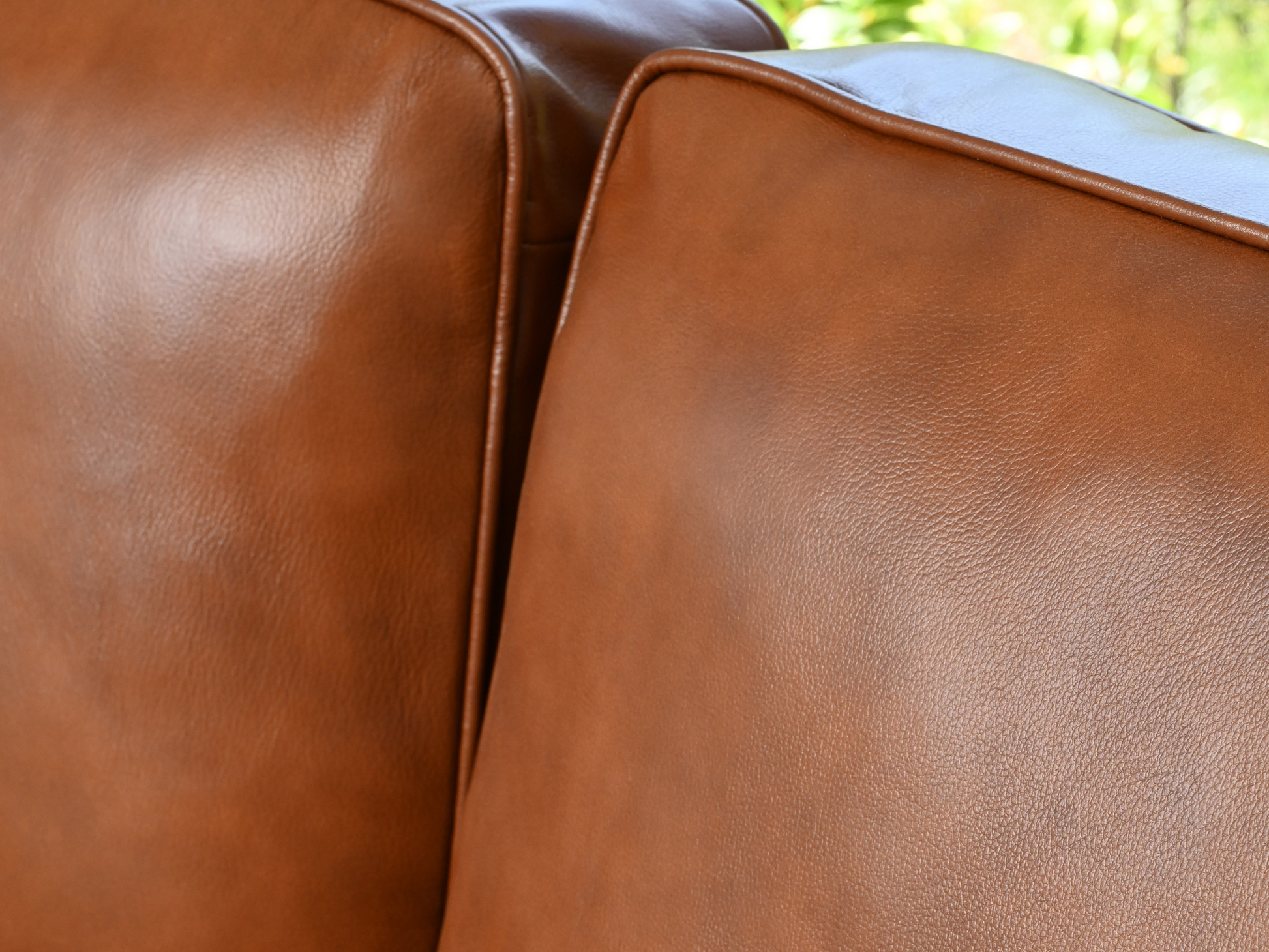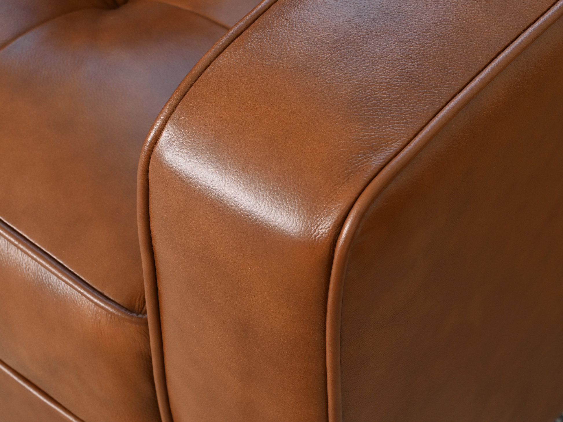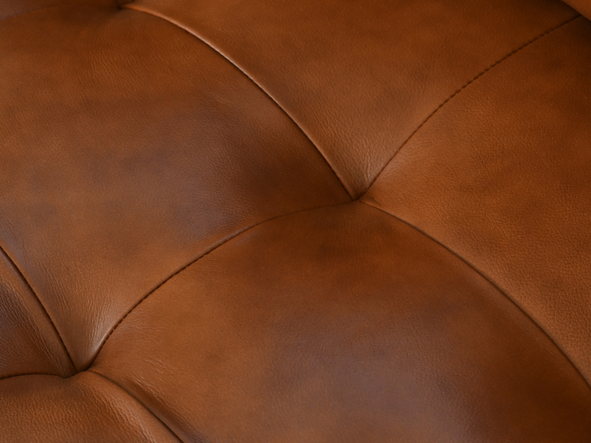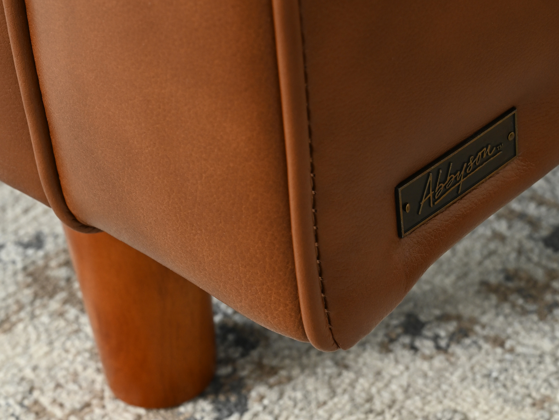 Capture modern mid-century style with Abbyson's Holloway Leather Sofa. The Holloway features a rich camel 100% Top Grain Leather on all seating areas with high-quality leather match on side panels and back. With high-density button tufted foam seats, detachable back cushions and a solid wood frame you'll be sure to have support, comfort and style for many years to come.