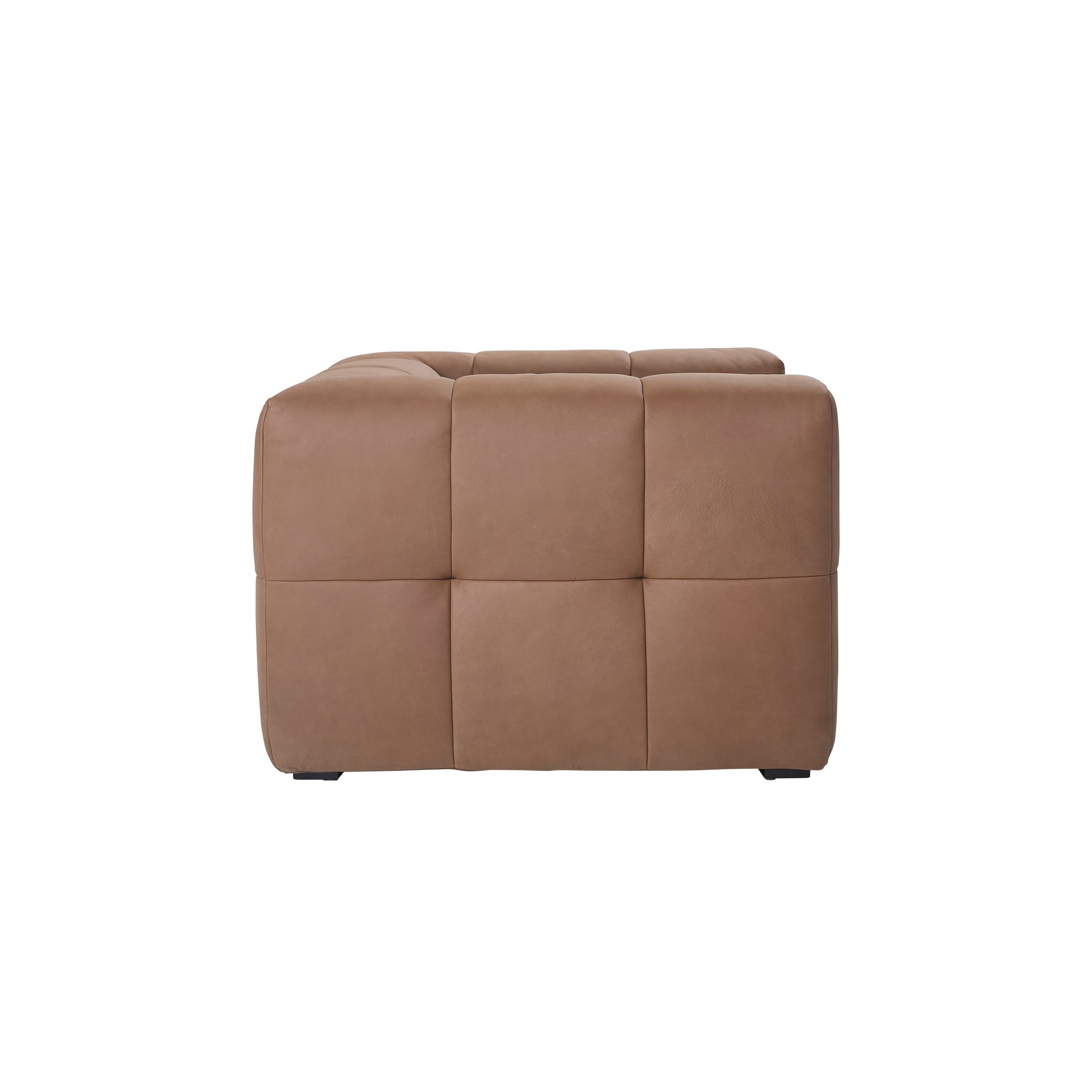 Upholstered in soft and supple 100% top grain leather; Biscuit tufting; 2.0 density foam seating with pocket coil; Kiln-dried hardwood frame to prevent warping
