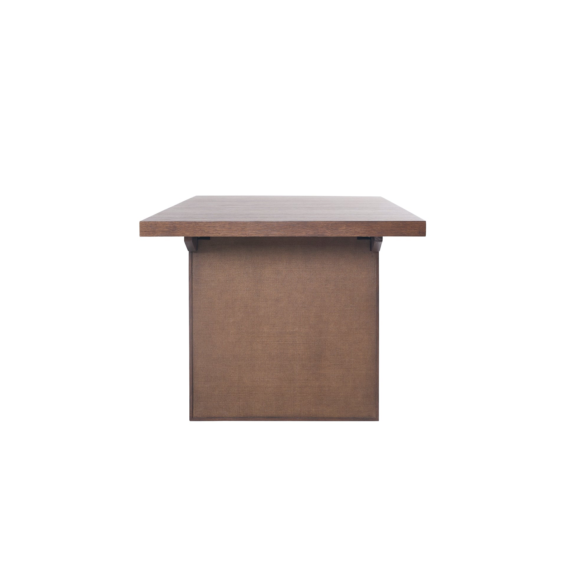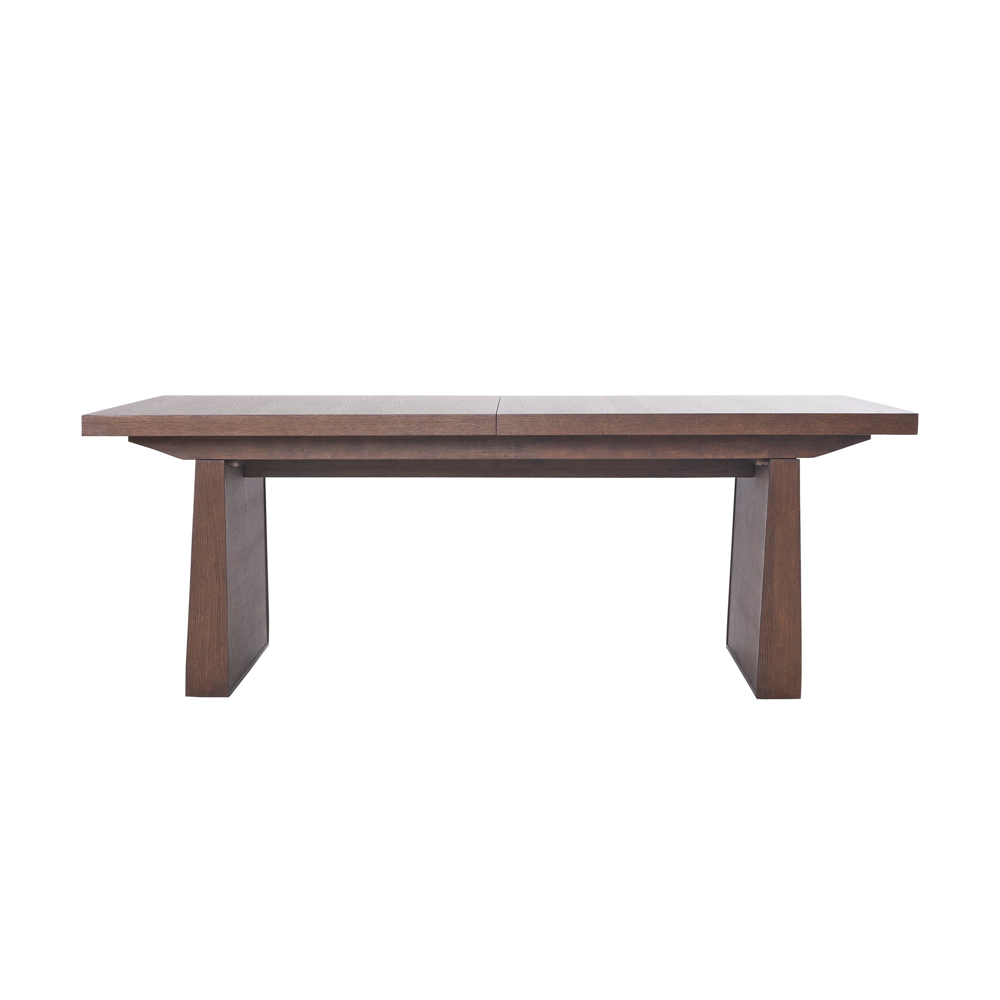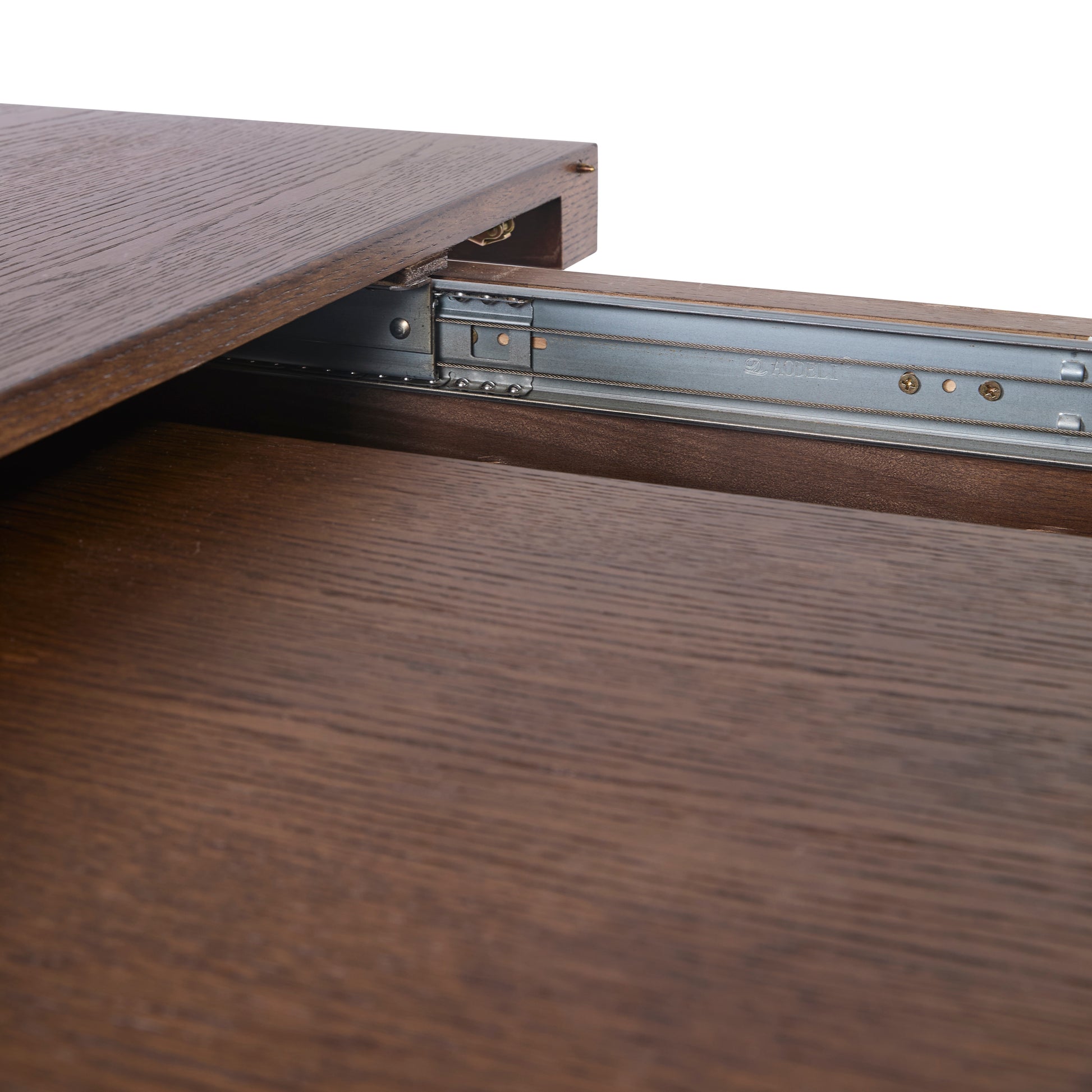 JoJo Fletcher Sawyer Oak and Grasscloth 84-120in Dining Table with 2 Leaves, Brown