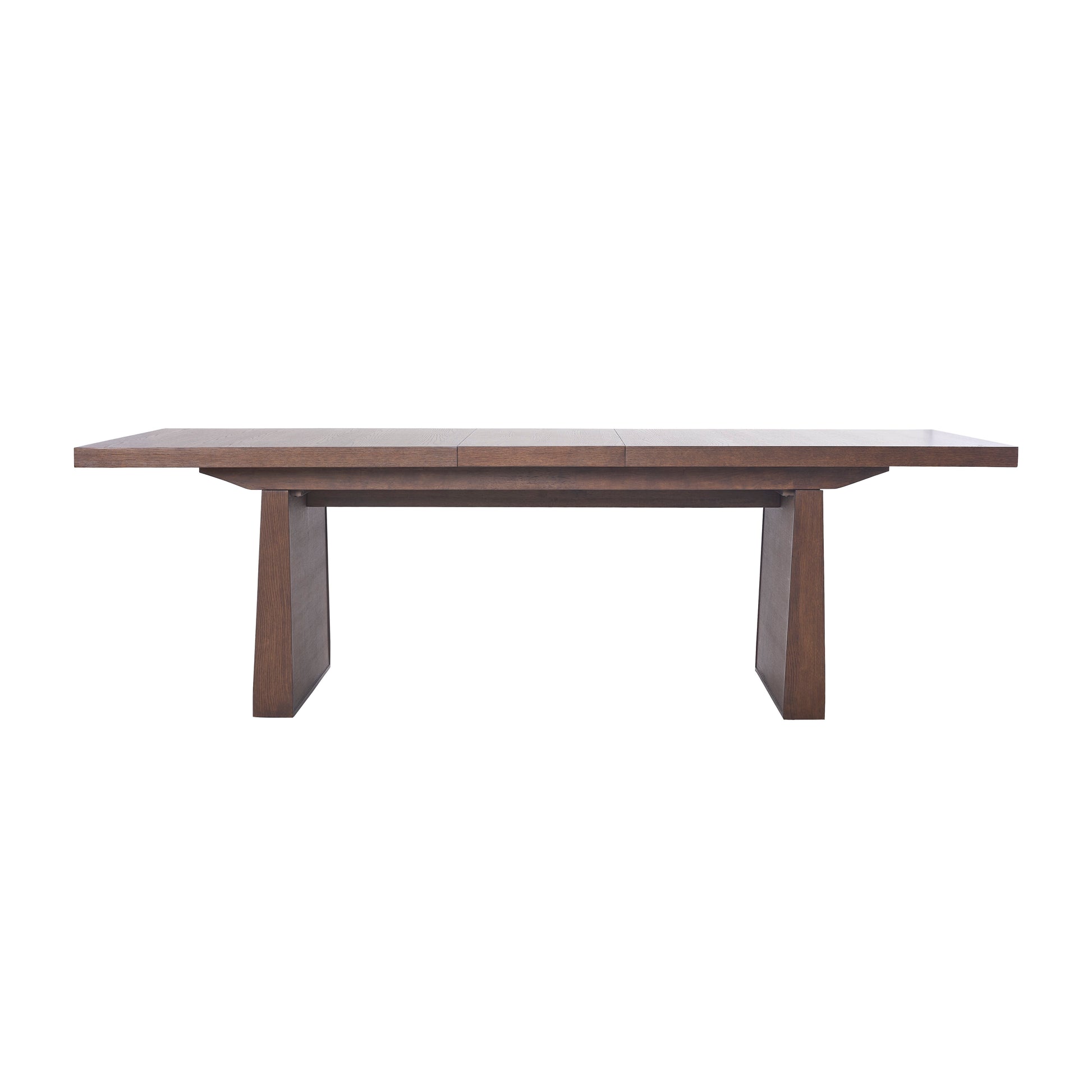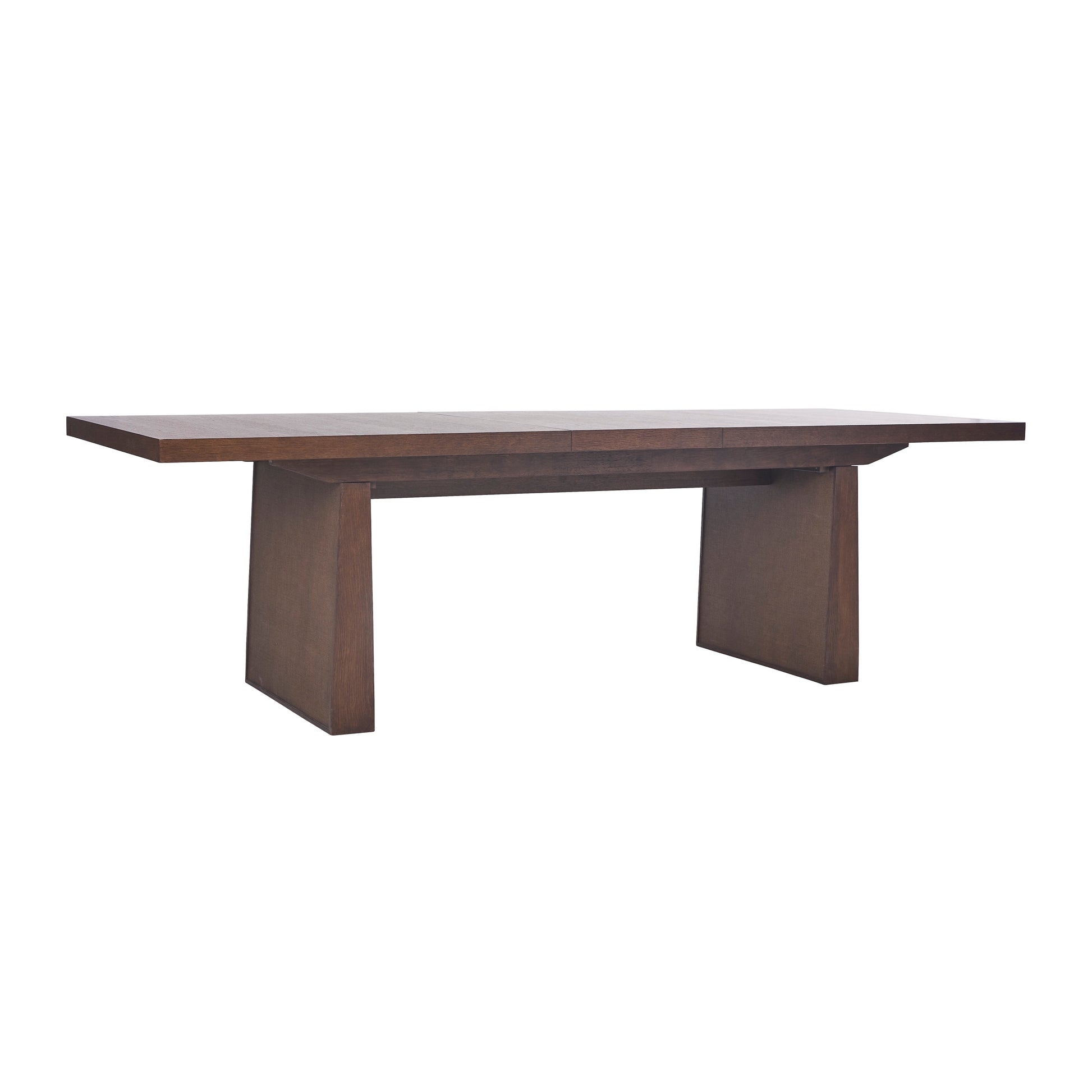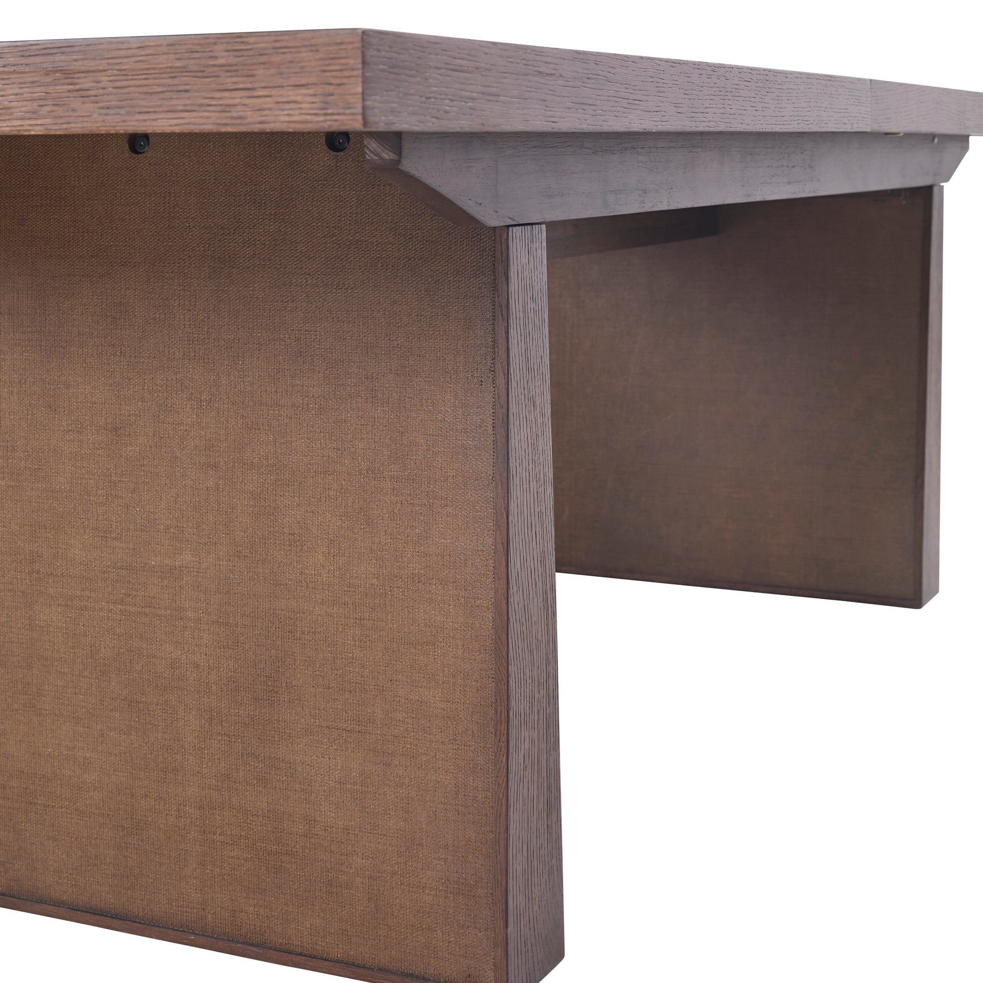 JoJo Fletcher Sawyer Oak and Grasscloth 84-120in Dining Table with 2 Leaves, Brown