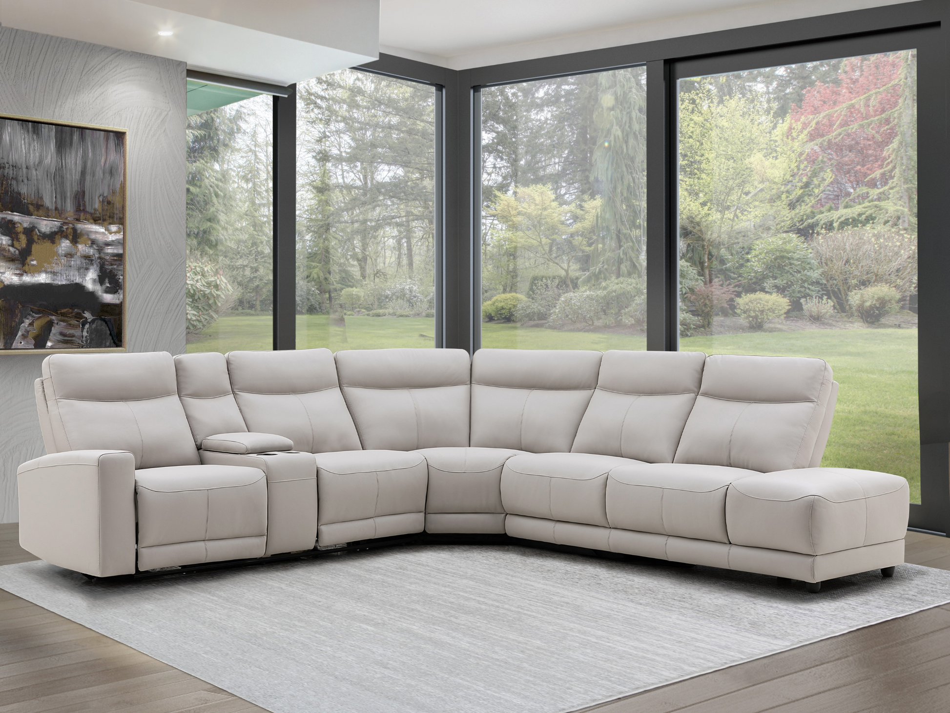 Includes: One (1) SectionalA traditional sectional sofa with transitional styling ideal for any living space.Sleek top-grain leather and vegan leather match upholstery is design-forward and smooth as dark wood legs form a pleasing palette.Extra foam padding and reclining seats embellish seating comfort.Solid hardwood frame construction ensures a quality build.A console compartment flips up to offer storage for devices and accessories.Assembly Required
