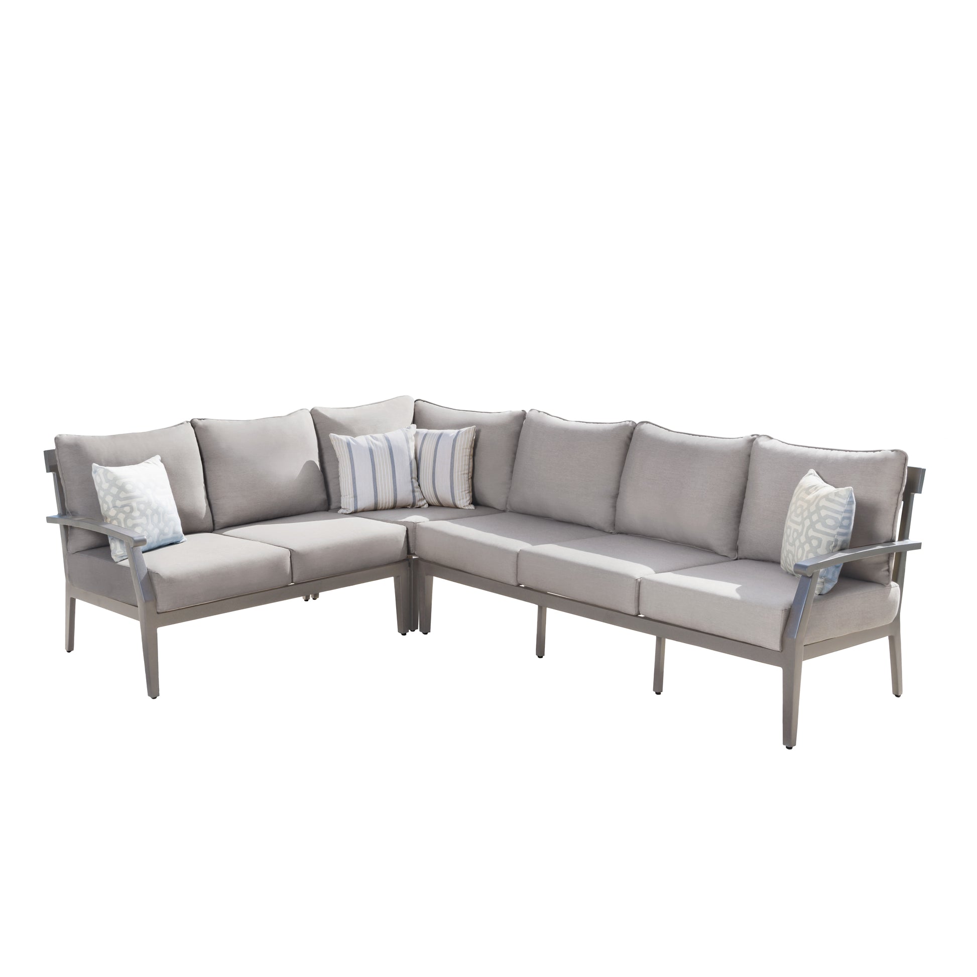 Includes: Sectional (1) RAF Sofa + (1) LAF Loveseat + (1) Corner Wedge Materials: Power Coated Aluminum Frame Color: Gray