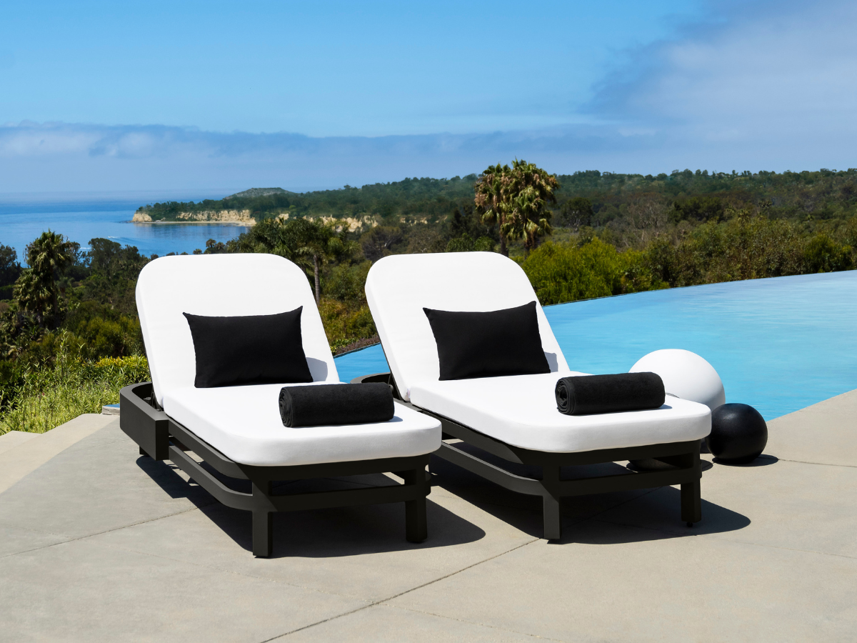 Create an elegant retreat in your outdoor space with the Santino® Outdoor Chaise Lounge (Set of 2). Made with comfort in mind, the Santino® Collection is the perfect addition to your outdoor space. Santino® offers durable quality with eye-catching style, featuring Sunbrella wrapped cushions and powder coated aluminum. The Santino® Collection boasts a unique design and lasting beauty you'll want to show off all year long.