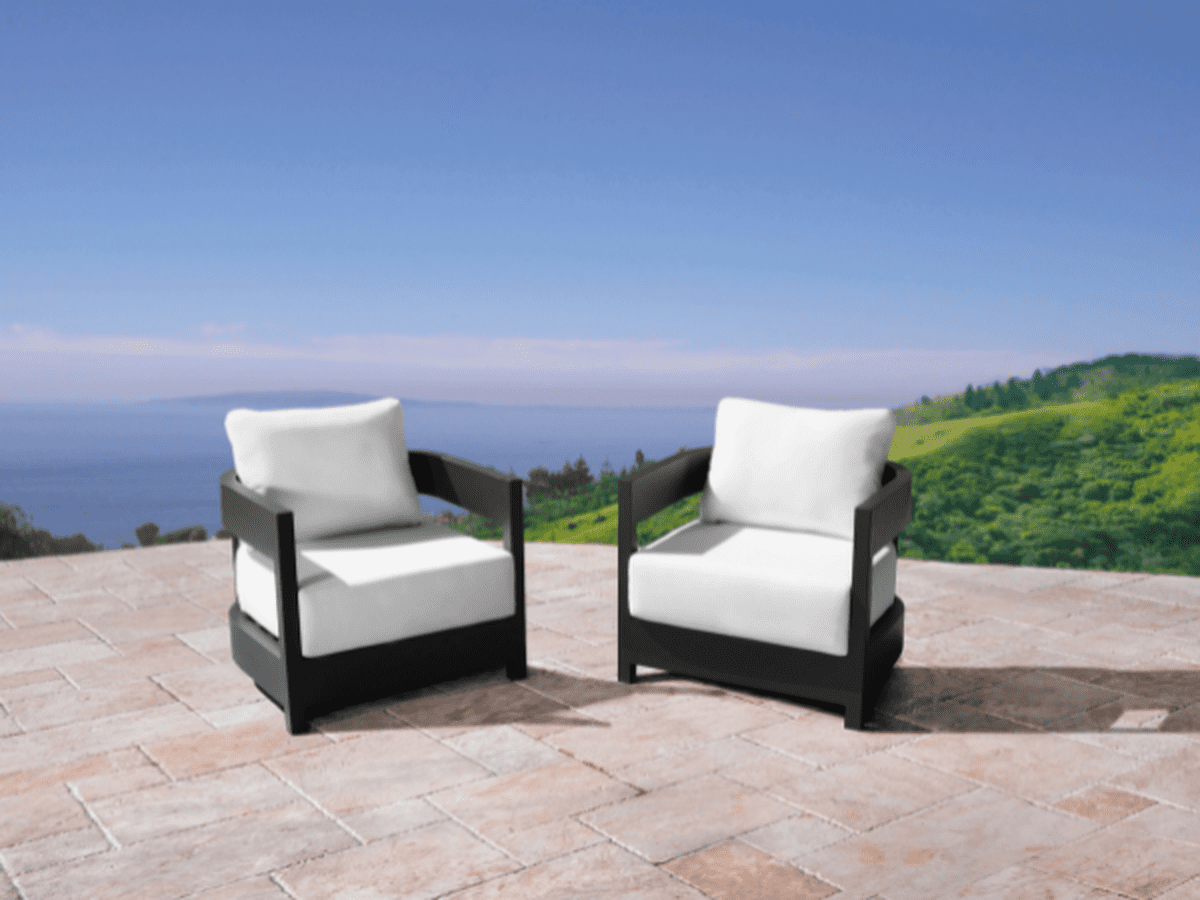 Santino and its design are registered trademarks of Abbyson Living, LLC. Reg. No. 7,451,742. Includes: One (1) Fire Table, Four (4) armchairs. Upholstery Materials: Sunbrella. Upholstery Fill: High density foam cushioning. Upholstery Color: White. Style: Coastal. Modern Outdoor cushions upholstered in Canvas White Sunbrella coverings Back cushions filled with high quality fiber Engineered with generous back support for maximum comfort. Strong and lightweight powder coated aluminum frame.