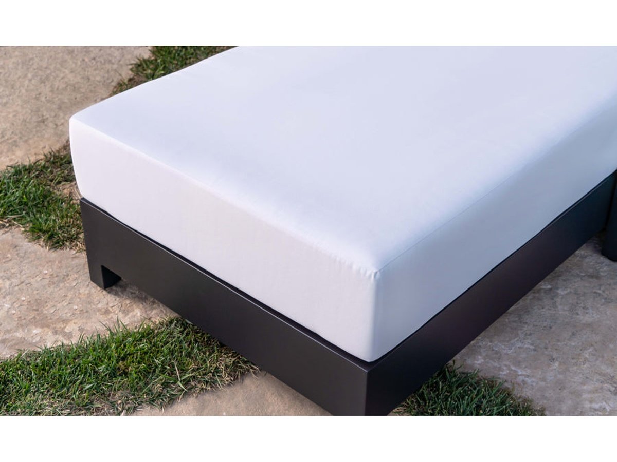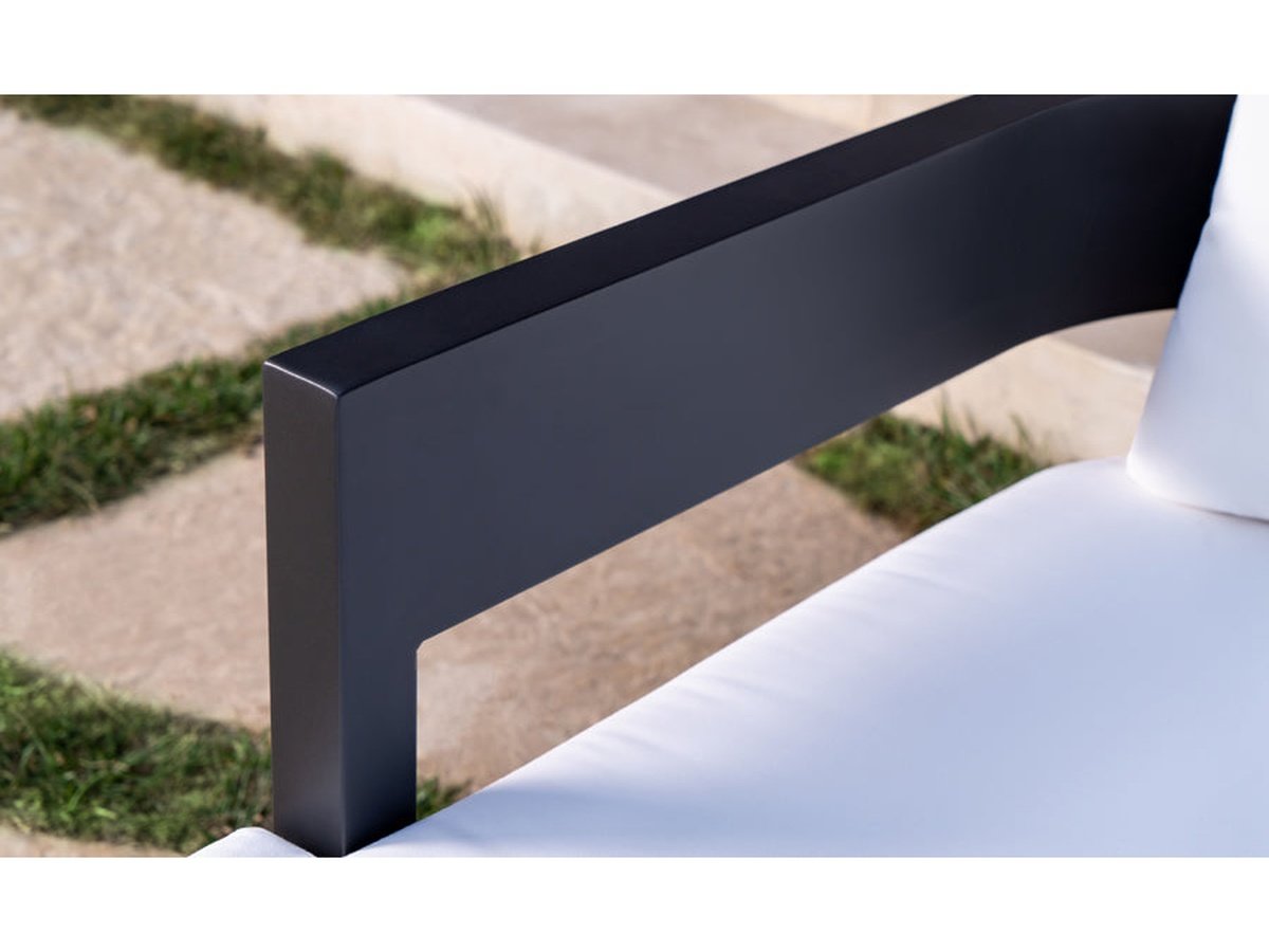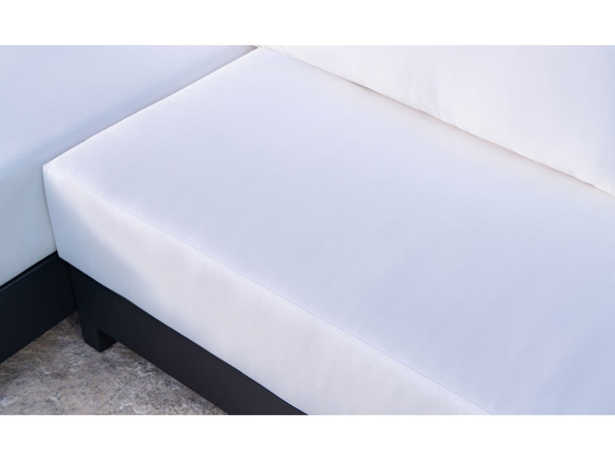 Includes: One (1) sectional Materials: Strong and light weight powder-coated aluminum frame. Upholstery Materials: Sunbrella Fabric. Color: White fabric, Black frame. Style: Modern, high density foam cushions for outdoor use.