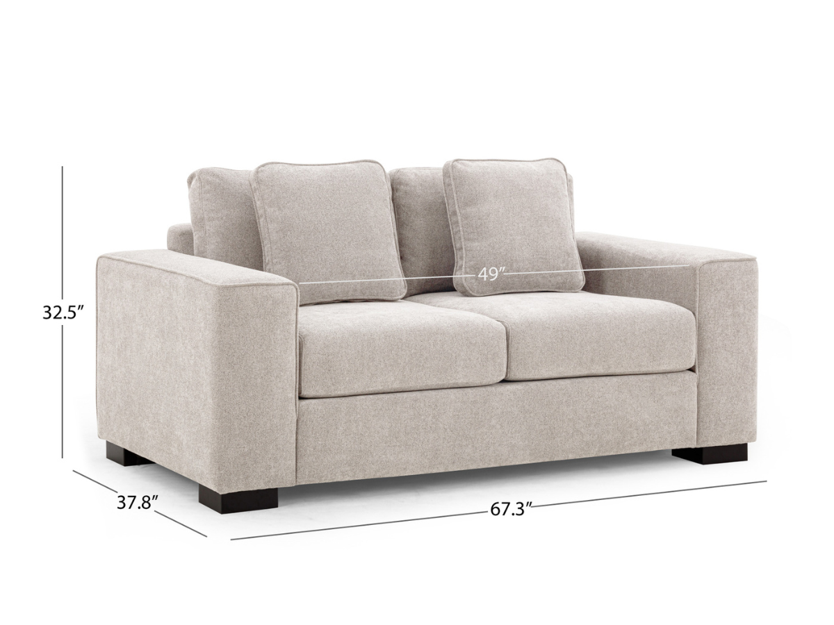 Overall Dimensions: 67.3 W x 37.8 D x 32.5 H Armrest Height: 24 Armrest Width: 9 Backrest Height: 15 Accent Pillows: 18 x 18