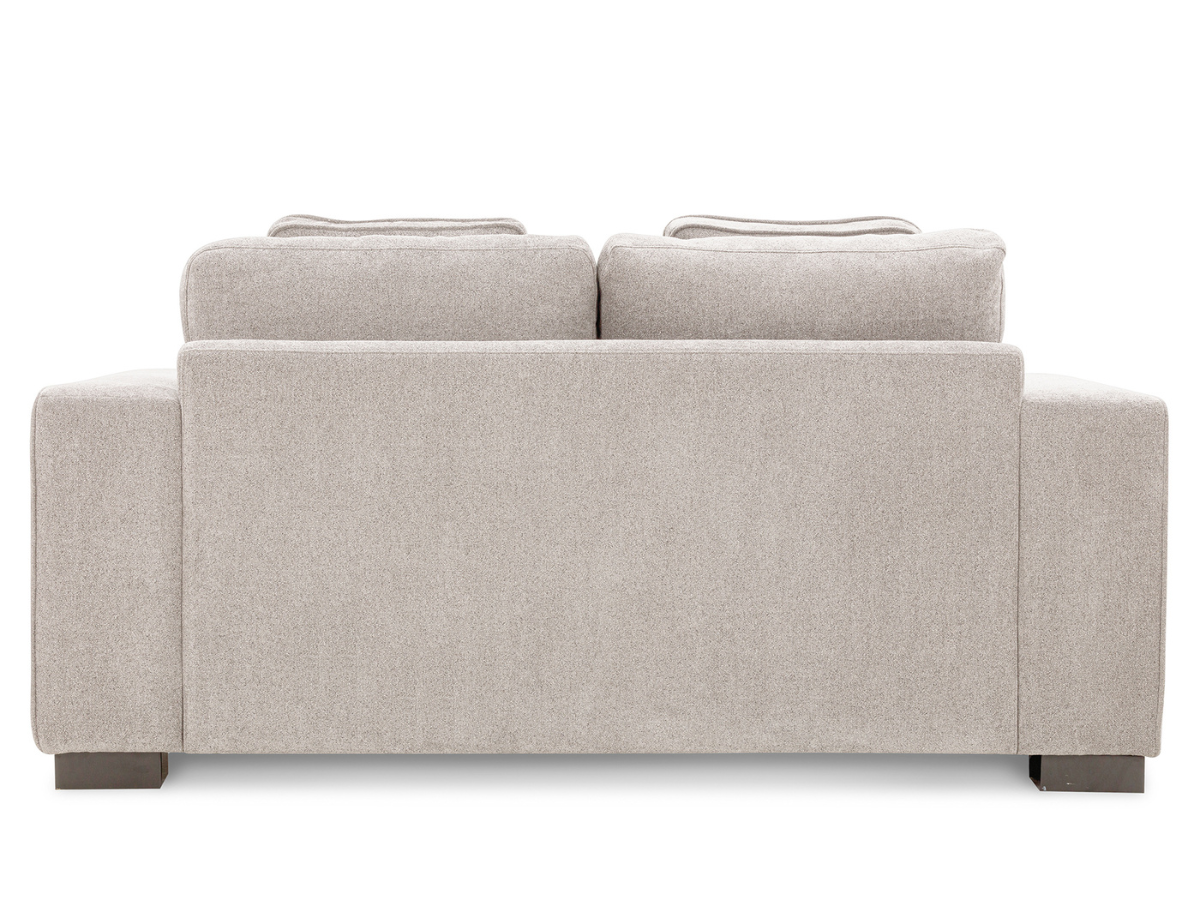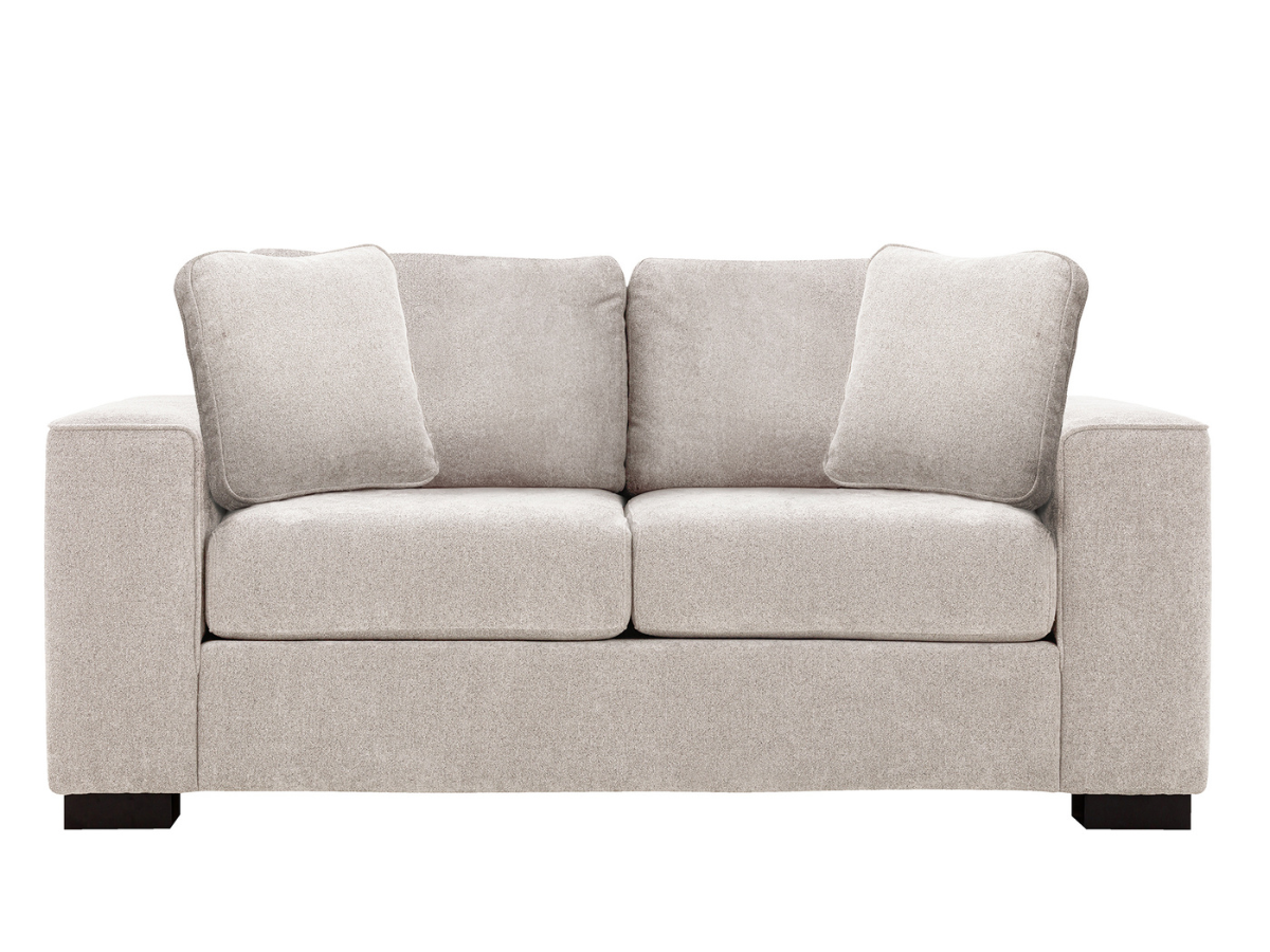 Includes: One (1) loveseat, two (2) accent pillows Upholstery Materials: Polyester Upholstery Color: Light Gray or Charcoal Style: Modern 2.2 High Density foam seat cushions Seat Comfort: Firm but comfortable Sinuous wire spring construction Elastic webbing suspension system for even weight distribution in the frame Kiln-dried, furniture grade engineered wood frame Corner Blocked Joinery Seat and back cushions are detachable Solid wood legs are covered with in a rich espresso brown finish Weight Capacity: 250 lbs per seat